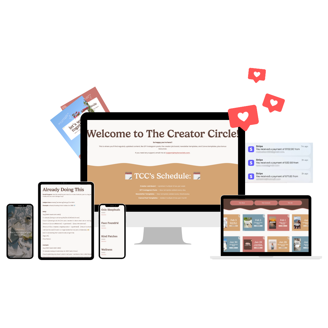 Access an exclusive creator job board, daily post ideas, Canva templates, bonus resources, and more.